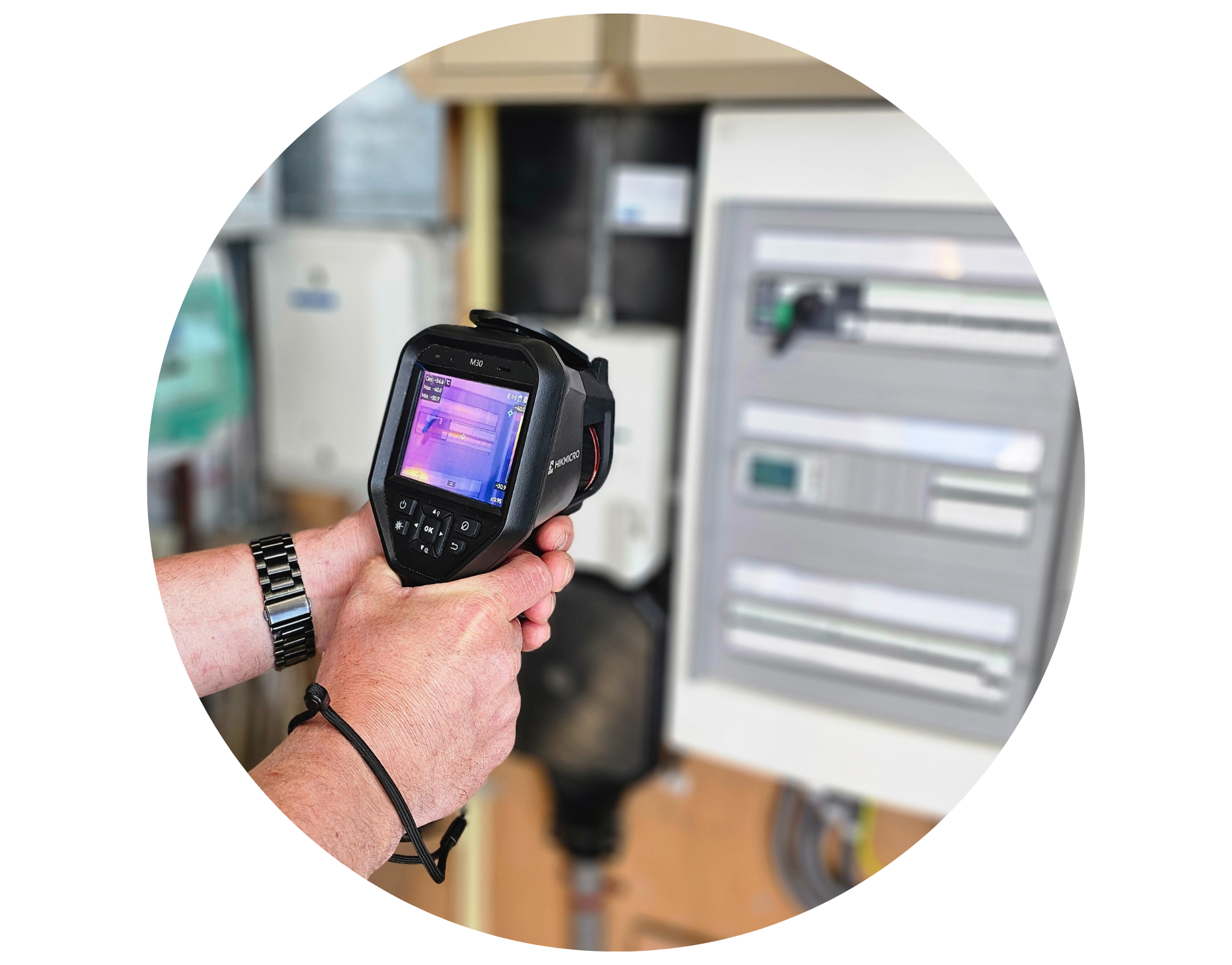De foto’s die Van der Weerd met ons deelde, laten mooi zien hoe de warmtebeeldcamera in de praktijk wordt ingezet: direct op locatie, tijdens inspecties en onderhoud aan installaties.