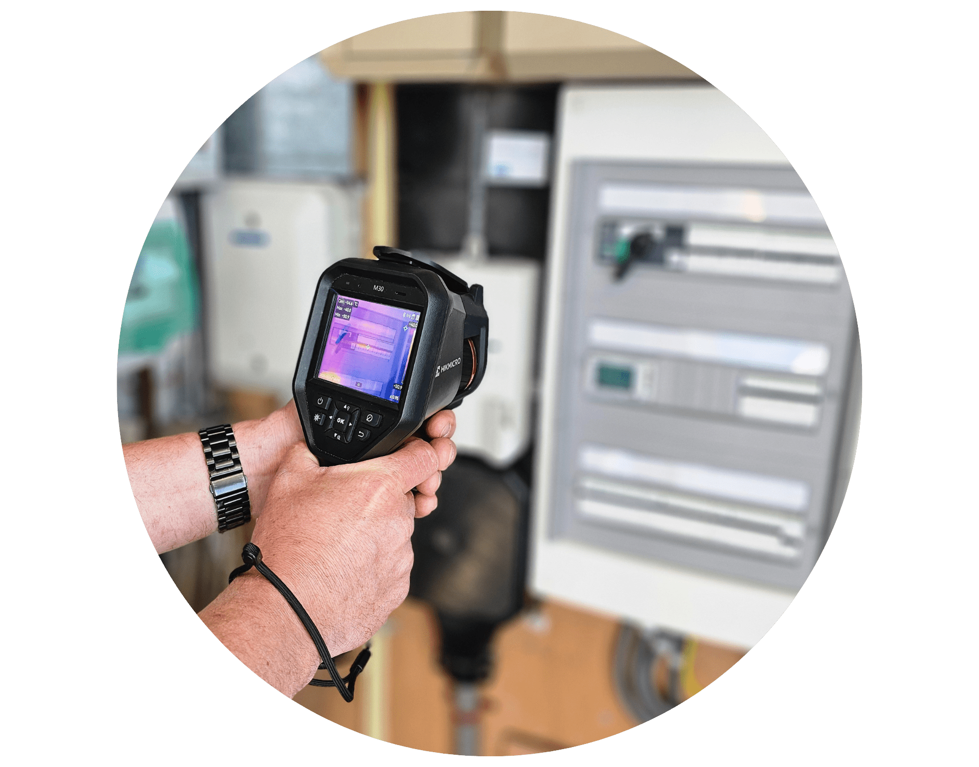 De foto’s die Van der Weerd met ons deelde, laten mooi zien hoe de warmtebeeldcamera in de praktijk wordt ingezet: direct op locatie, tijdens inspecties en onderhoud aan installaties.