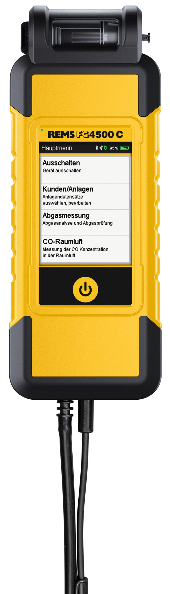 De REMS FG4500 C (voorheen Dräger) rookgasanalysemeter beschikt over een O2 en CO sensor en drukmeting conform CO-Ketelwet – BRL6000-25. De rookgasanalysemeter is uitgevoerd met een kleurendisplay / touchscreen en is standaard voorzien van een ingebouwde BlueTooth module.