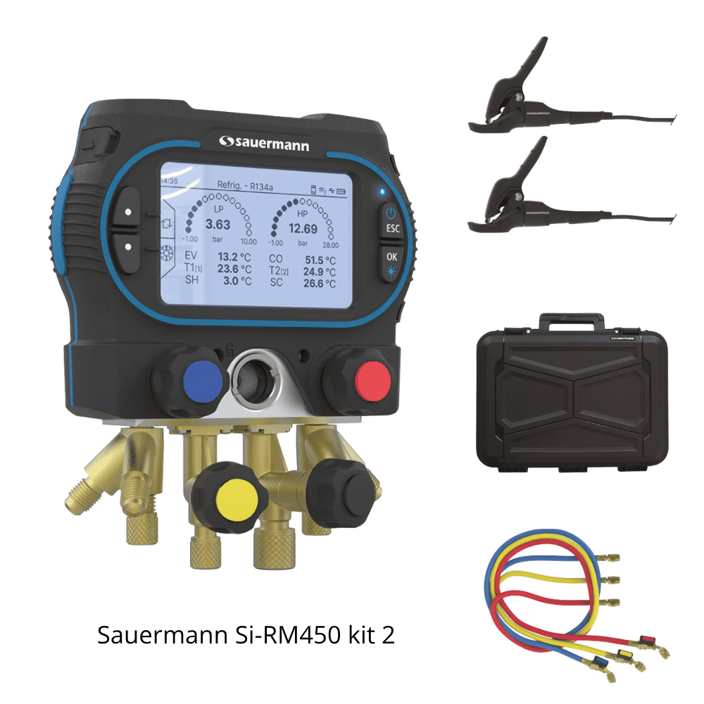 De Sauermann Si-RM450 is een robuuste en krachtige 4-weg digitale manifold voor het testen, vacumeren, vullen en onderhouden van koelinstallaties, airconditioningsystemen en warmtepompen, inclusief reversible systemen. Je werkt via de gratis Si-Manifold app of rechtstreeks op het in het toestel geïntegreerde antireflecterende glazen display, dat ook buiten goed leesbaar is. Ideaal voor nauwkeurig en efficiënt werken aan zowel eenvoudige als complexe koeltechnische systemen.